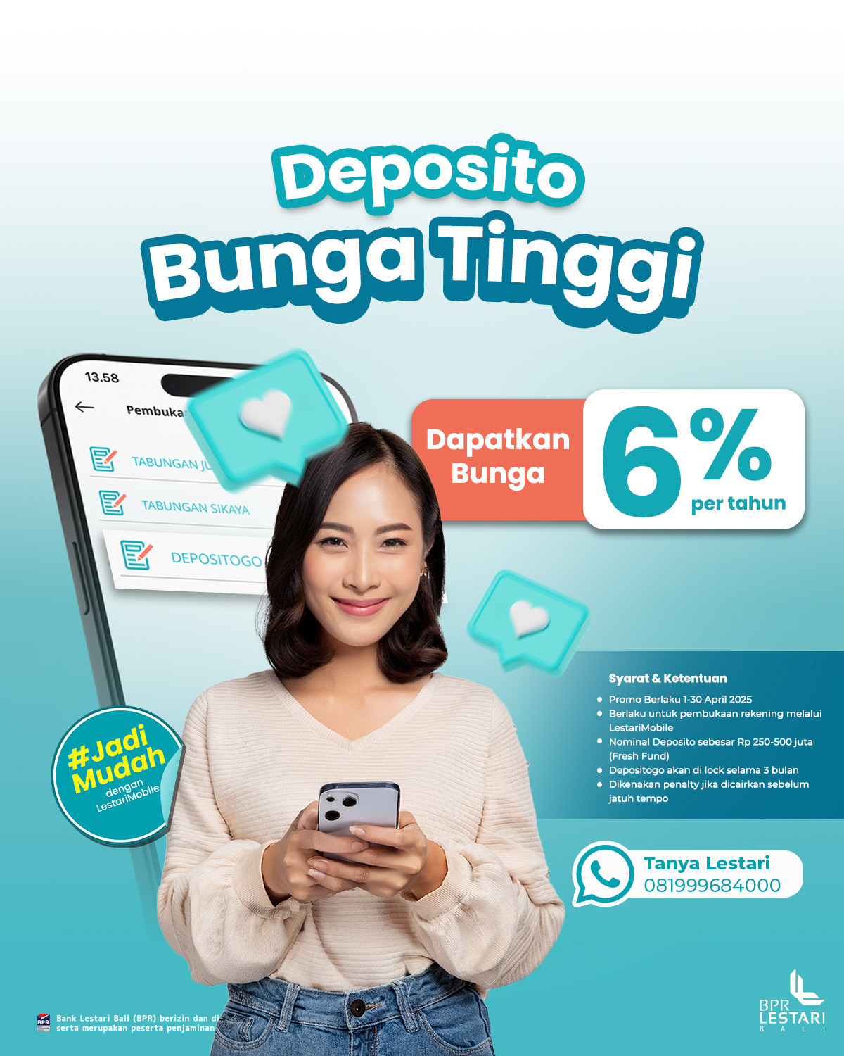 Nikmati beberapa keuntungannya dengan menjadi nasabah Lestari First, diantaranya :